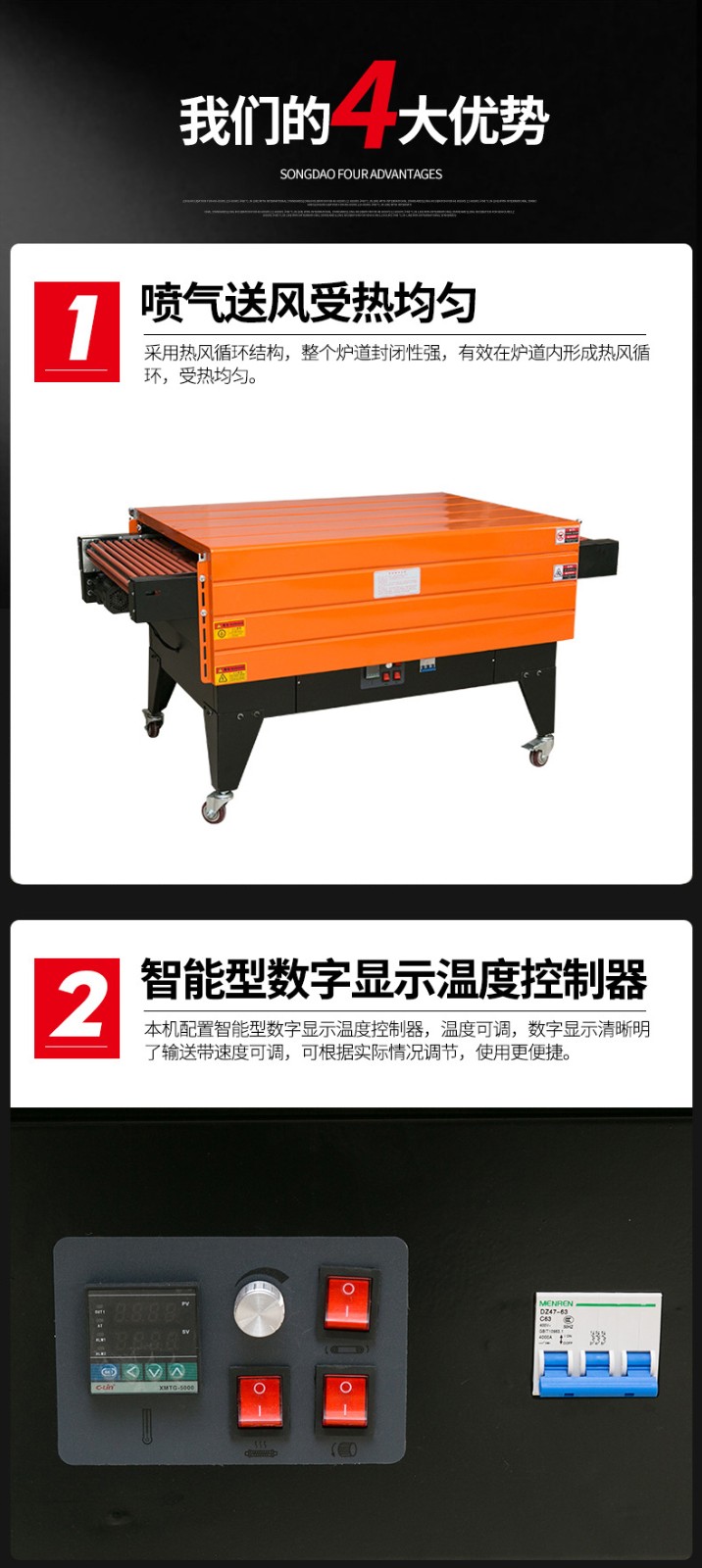 - 緊密貼合產品:噴氣式收縮機利用熱空氣噴射,使薄膜能夠緊密地貼合在產品的每一個角落和輪廓上。對于形狀復雜的產品,如帶有凹凸紋理的手工藝品或不規則形狀的機械零件,噴氣式熱空氣能沿著產品表面流動,確保薄膜均勻收縮,呈現出精致的包裝外觀。這種緊密貼合還可以增強產品在運輸和展示過程中的穩定性,防止產品晃動或相互碰撞而受損。