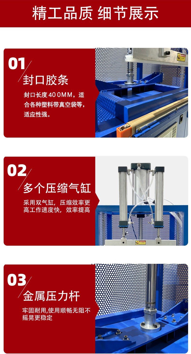 - 壓力大小:合適的壓力能使包裝材料在加熱時(shí)充分接觸并融合,形成牢固的封口。壓力不足,封口處無法完全密封,會(huì)出現(xiàn)漏縫。壓力過大,可能會(huì)使包裝材料過度擠壓、變形,甚至損壞,尤其是對(duì)于一些質(zhì)地較軟或較薄的材料,容易導(dǎo)致封口處破裂或材料內(nèi)部結(jié)構(gòu)受損。