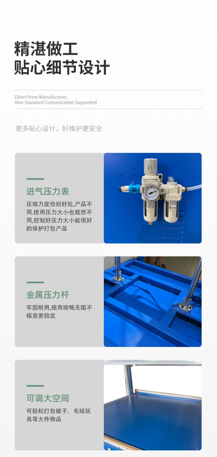 - 材料厚度:過薄的材料(如厚度<0.08mm 的 PE 膜)易被高壓壓破,或因加熱過快焦化;過厚的材料(如厚度>0.2mm 的復(fù)合膜)若溫度、壓力不足,會(huì)出現(xiàn)熔化不徹底、封口分層的問題。