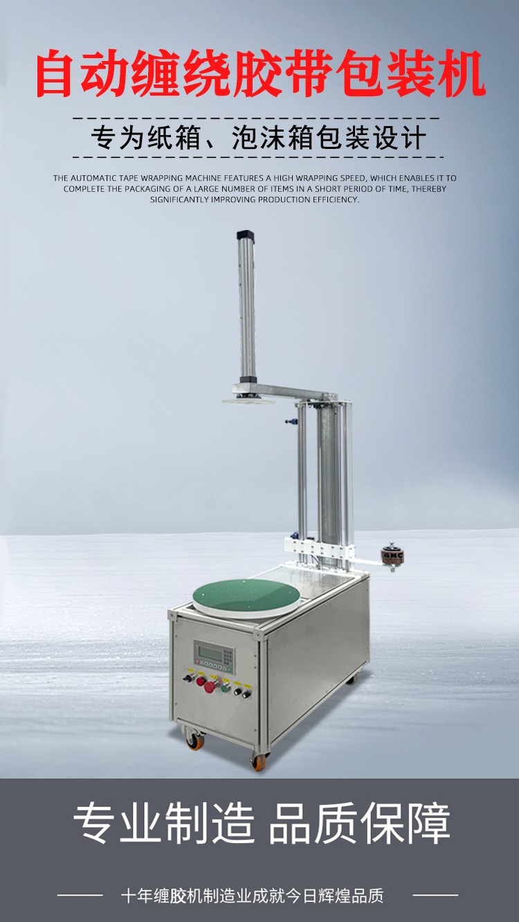 - 貨物纏繞機(jī):主要用于托盤(pán)貨物、大型設(shè)備等的包裝,通過(guò)旋轉(zhuǎn)工作臺(tái)帶動(dòng)貨物旋轉(zhuǎn),同時(shí)膠帶從上方或側(cè)面進(jìn)行纏繞,如常見(jiàn)的物流倉(cāng)儲(chǔ)用膠帶纏繞機(jī)。
