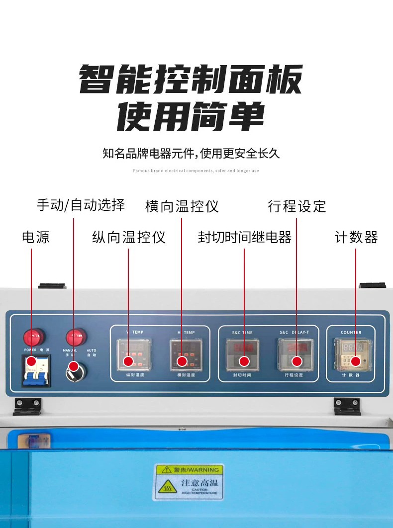 • 人工操作易出現套膜歪斜、封口不牢、收縮不均、切邊毛糙等問題,影響產品外觀與防護效果;全自動設備通過精準的機械定位與電子控制,封切精度可達 ±0.1mm,熱收縮溫度誤差控制在 ±2℃,確保每一件產品的包裝都平整、密封、美觀,品質高度統一。