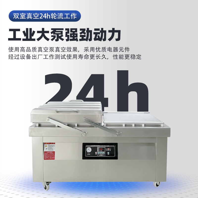 - 交替作業(yè),效率提升 50% 以上雙室機(jī)型的兩個(gè)真空室可實(shí)現(xiàn) “一工一備”:當(dāng)其中一個(gè)真空室正在進(jìn)行抽真空、熱封作業(yè)時(shí),操作人員可以在另一個(gè)真空室完成物料擺放、袋口整理的準(zhǔn)備工作。單室機(jī)型則必須等抽真空 - 熱封 - 開蓋取件整個(gè)流程結(jié)束后,才能進(jìn)行下一批物料的擺放,存在明顯的操作等待空窗期。同等規(guī)格下,雙室機(jī)的單位時(shí)間包裝量是單室機(jī)的 1.5-2 倍,尤其適合中小型加工廠的連續(xù)批量生產(chǎn)。