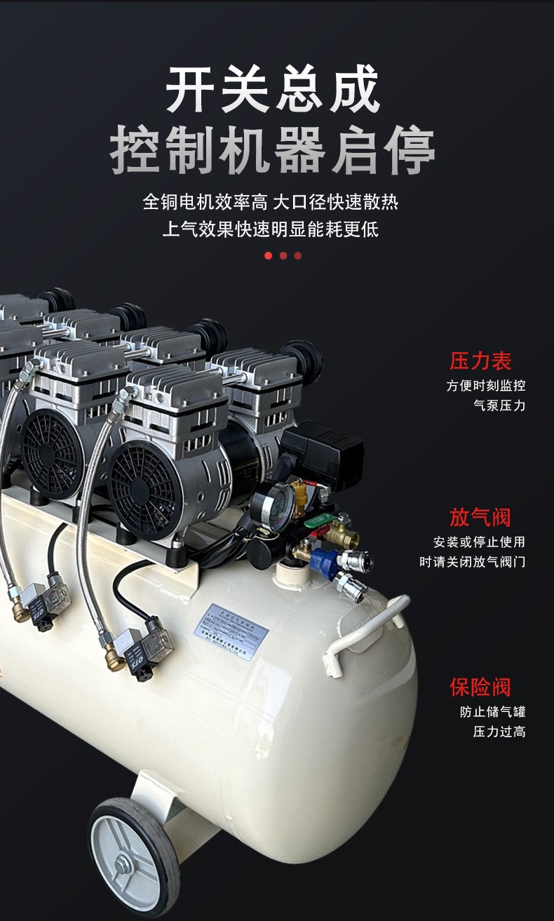 - 壓縮過程:活塞向上運動,氣缸容積減小,空氣被壓縮,壓力升高。由于采用特殊的活塞環和氣缸材料,如聚四氟乙烯等自潤滑材料,活塞與氣缸之間形成良好的密封和潤滑,無需潤滑油,就能保證壓縮過程的順利進行。