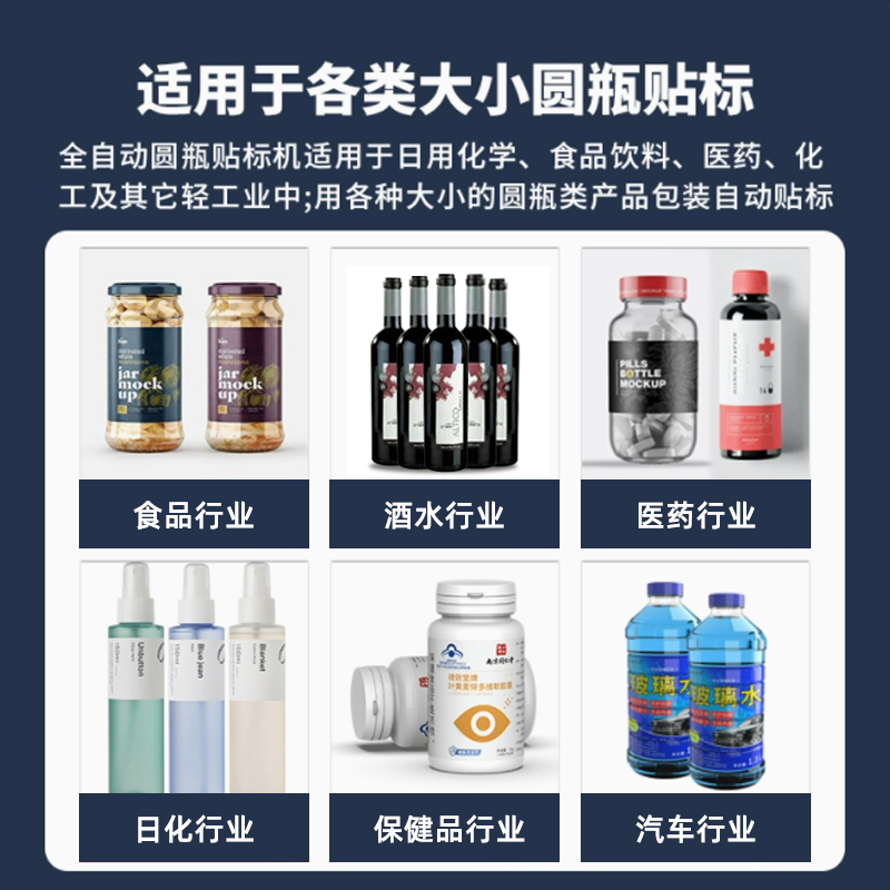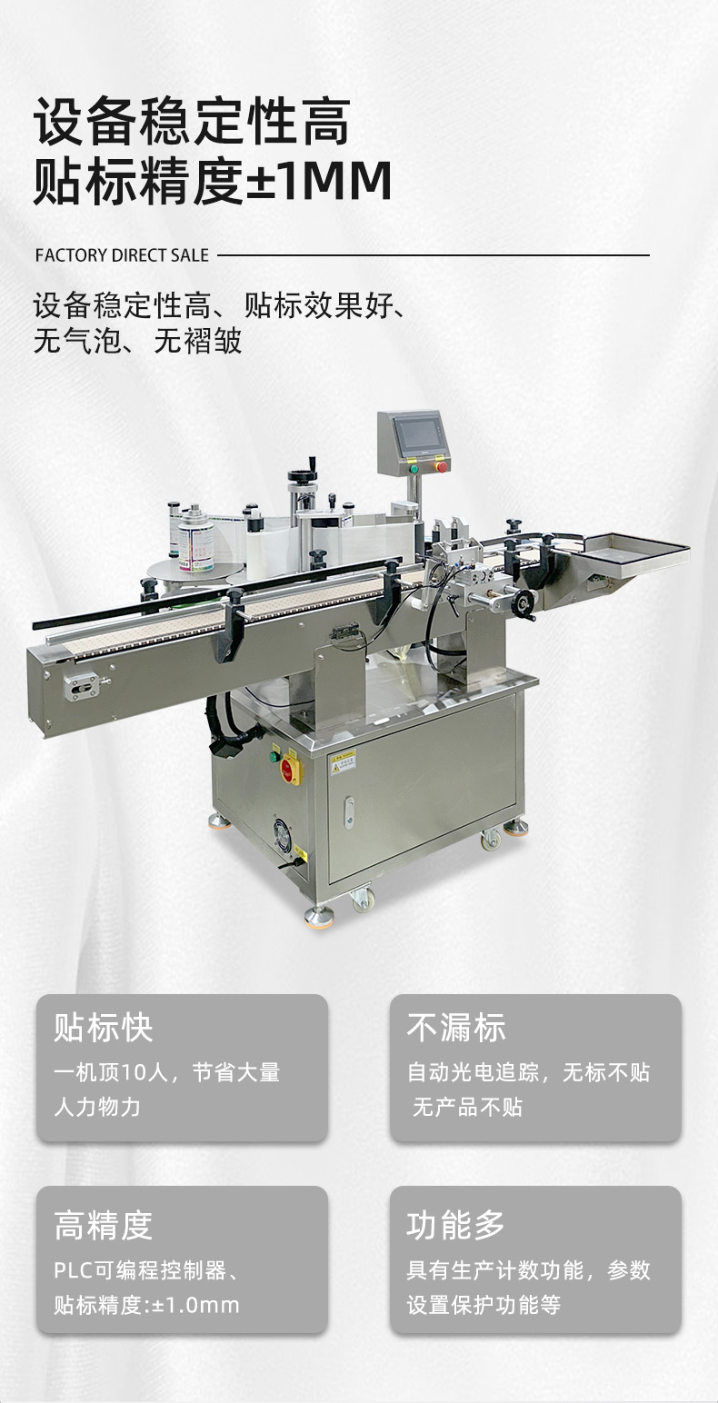- 貼標:當圓瓶到達貼標位置時,貼標機構的標簽牽引裝置根據預設的標簽長度,將標簽從標簽卷上牽引出來,貼標頭在控制系統的指令下,將標簽準確地貼附在圓瓶表面。同時,壓標裝置對標簽進行壓實,使其牢固地粘貼在瓶身上。