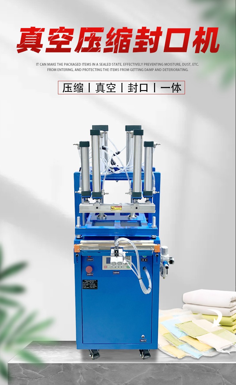 - 封口:抽氣和壓縮完成后,加熱元件對包裝袋封口部位進行加熱,使塑料薄膜熔化,同時通過壓力裝置施加壓力,使封口處的塑料薄膜粘合在一起,形成密封,防止空氣再次進入包裝袋。