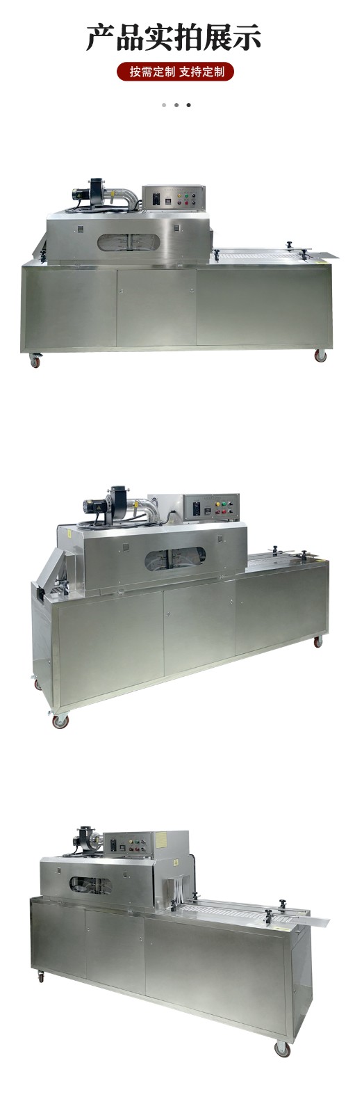 - 前期準備與輸送:先人工或自動化設備將套好收縮膜(如 PVC、PET 膜)的產品放置在輸送帶上,輸送帶通過無級調速系統啟動,將產品勻速送入收縮通道。